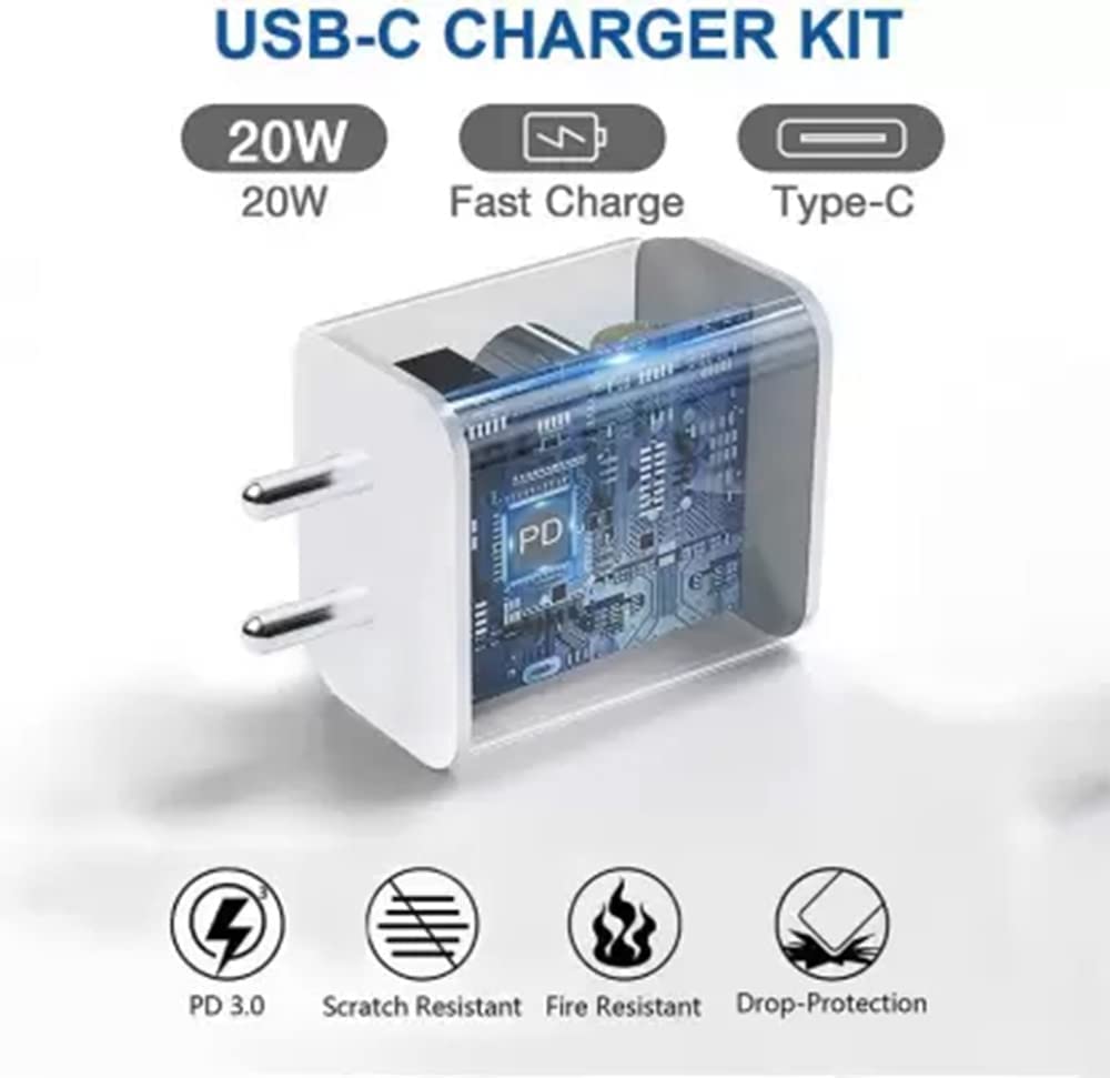 20W Fast Charger Adapter: Fast Charger equipped with 20W PD 3.0 USB Type C power delivery wall plug, PD 3.0 Quick-Charge USB C port provides Max 20W output power, charge your device up to 3x.
