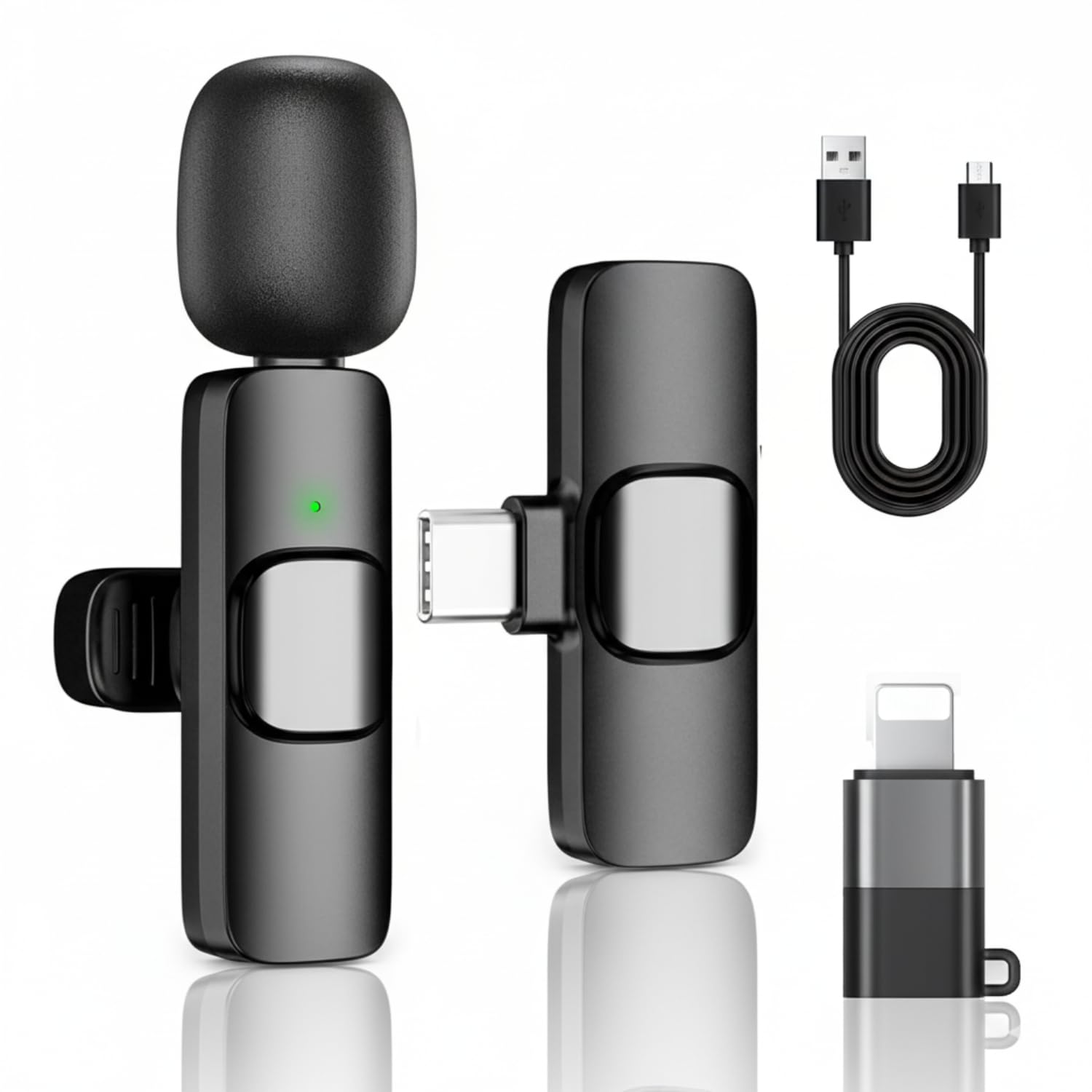 Plug & Play – Hassle-Free Setup: No Bluetooth pairing or app installation required. Just plug the USB-C receiver into your iPhone or Android device, turn on the microphone, and it automatically connects for instant, uninterrupted recording.