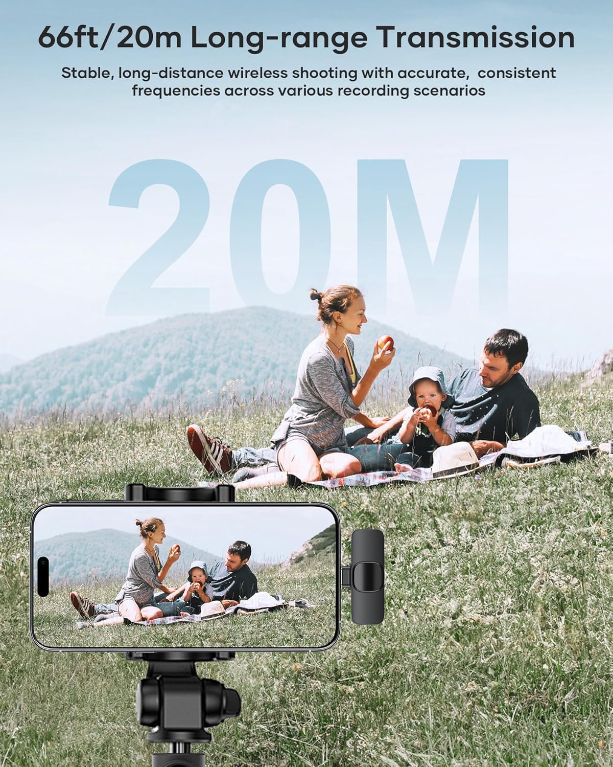 Wireless Lavalier Microphone for iPhone/Android/PC,Mini Microphone with Noise Cancellation for Recording,for YouTube/Facebook Live Stream, TikTok