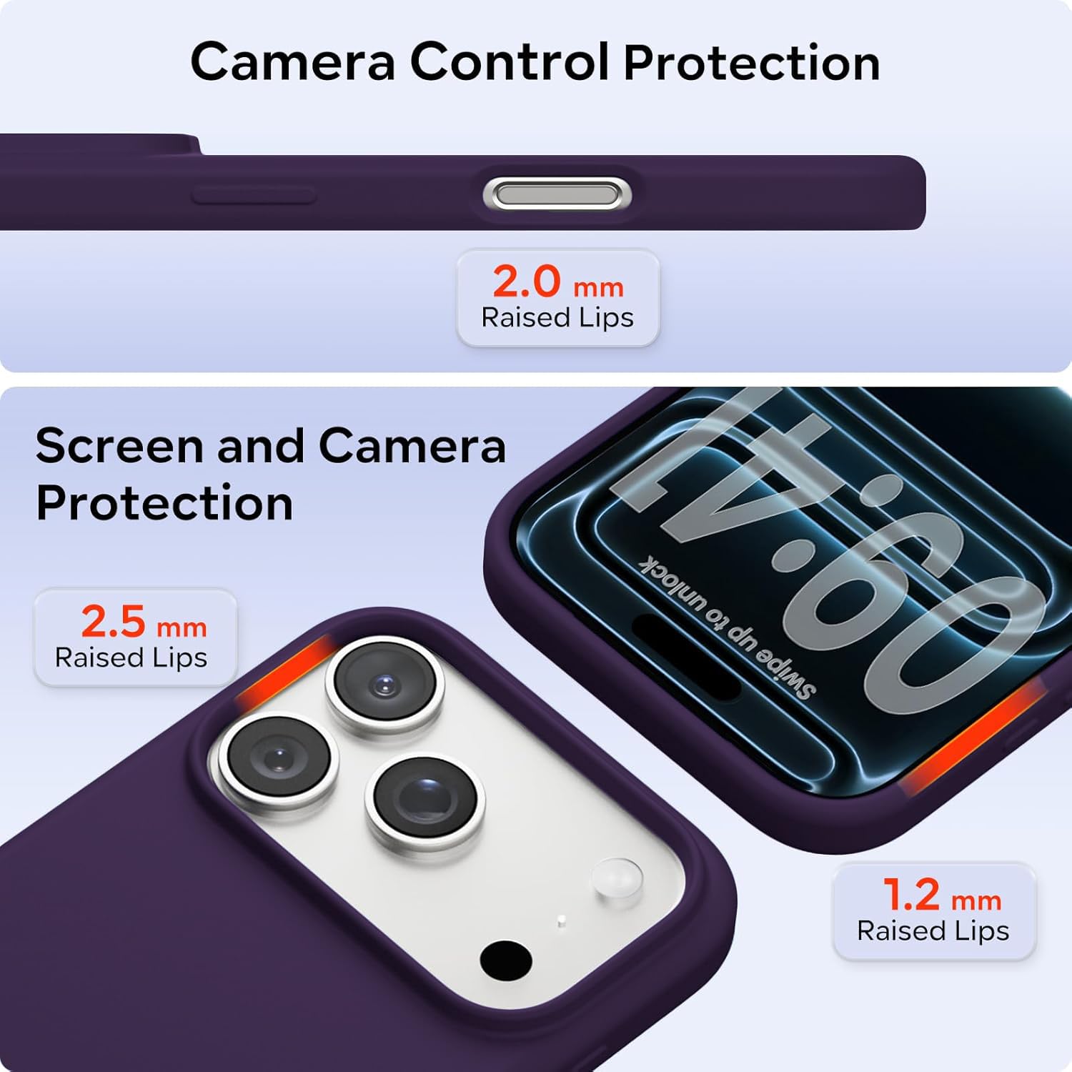 【Premium Liquid Silicone】:Designed for iPhone 17 Pro Max Case (6.9 inch, 2025 Released); Crafted from real liquid silicone,this case offers superior dust resistance, outperforming 95% of other silicone cases;Its sturdy two-layer struction ensures reinforced toughness and a smooth feel, while the inner microfiber hugs every corner to prevent scratches.