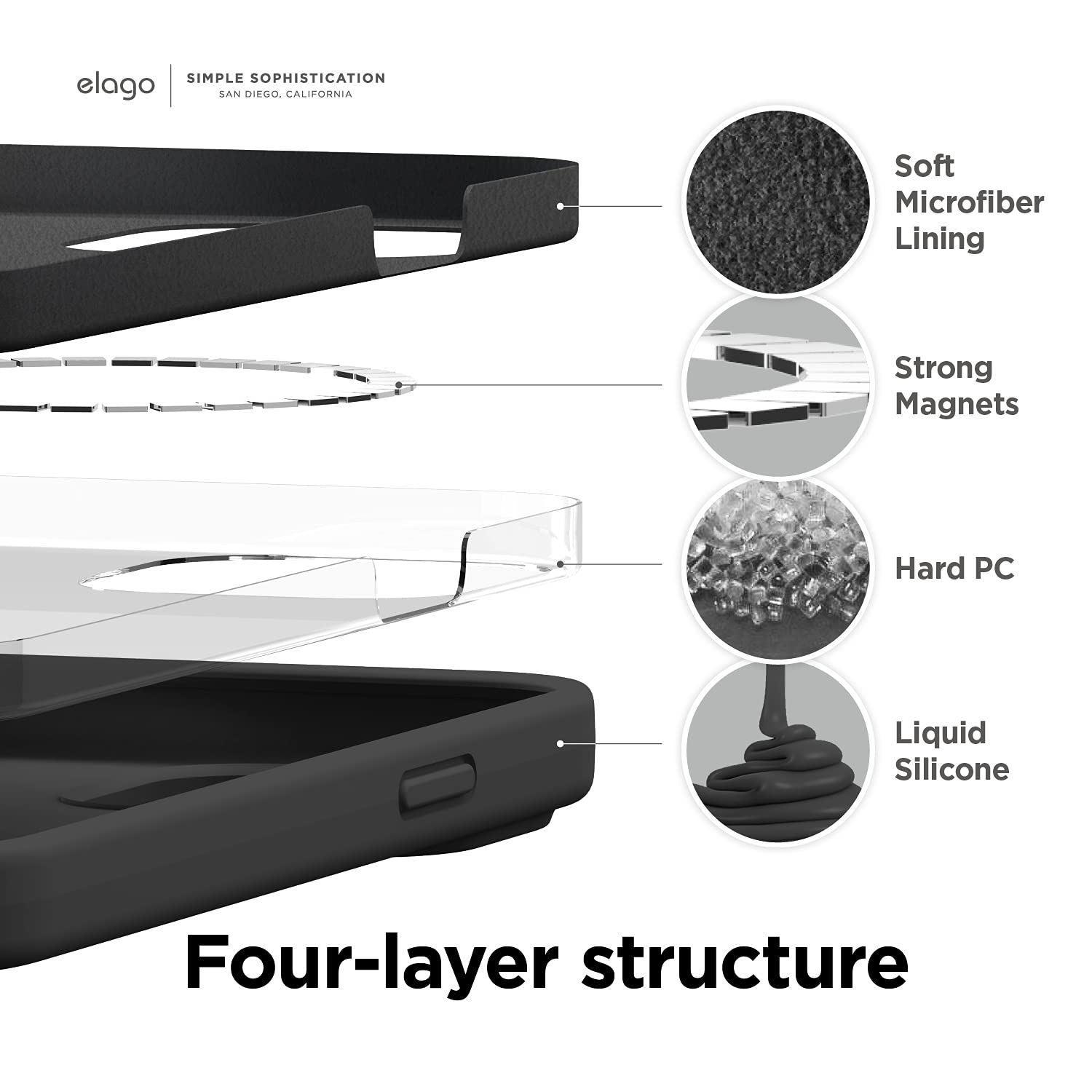 elago Magnetic Silicone Case Compatible with iPhone 13 Pro Max Case 6.7 Inch Compatible with MagSafe – Built-in Magnets, Protective Cover, Compatible with All MagSafe Accessories (Black)