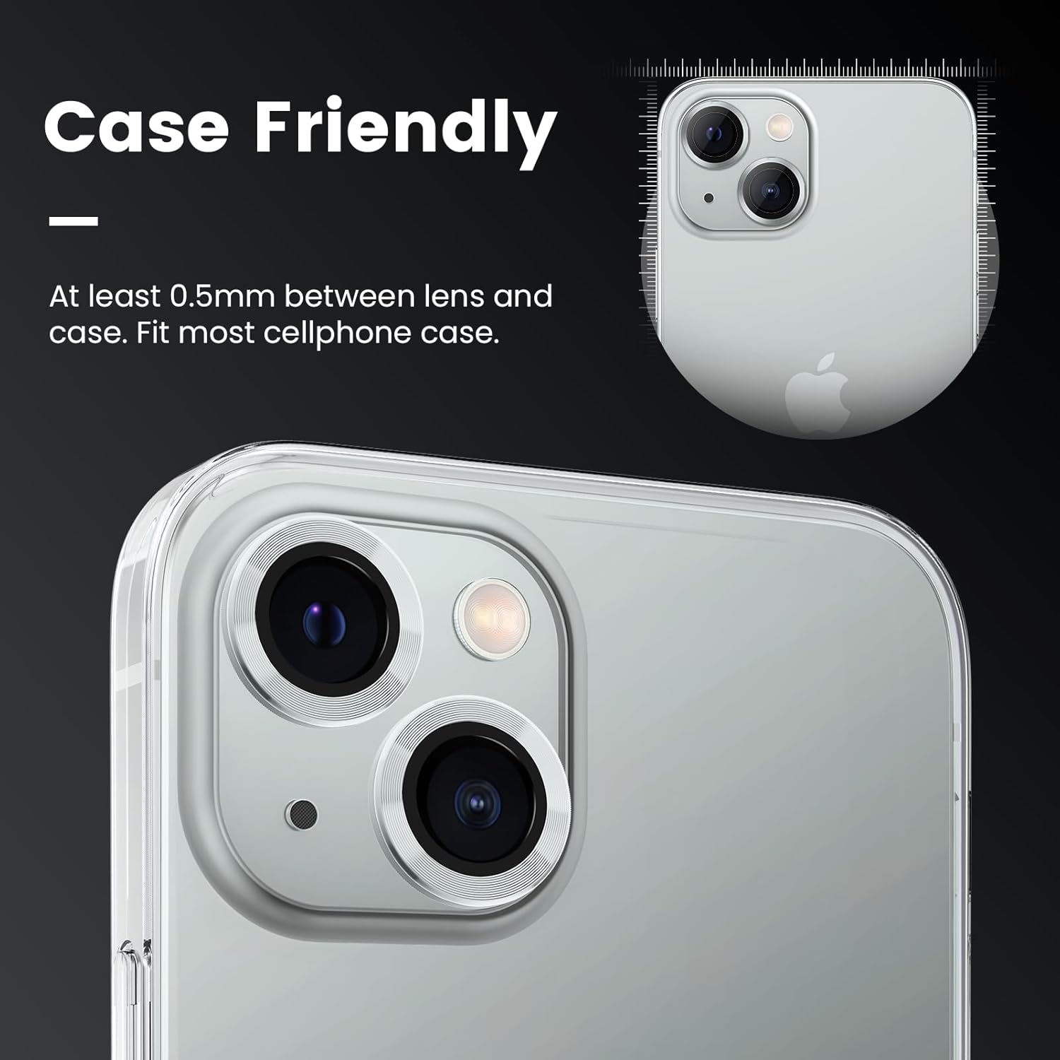 【Keep Lens Original Design】This Iphone 13, Iphone 13 mini camera lens protectors according to the camera lens 1:1 original design and ensures compatibility with 99.99% of cell phone cases, meanwhile to keep the original color of the phone lens,almost like without lens protector after taking it on.