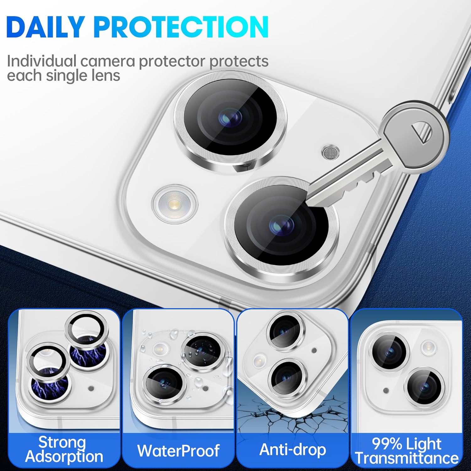 [Enhanced Anti-drop and Anti-scratch Protection] Chemically enhanced 12 layers of electroplated sapphire 9H tempered glass will not break and crack in the face of super-strong foreign object impact, and even hard rocks are difficult to leave scratches on its surface. Give your phone camera lens everyday protection from accidental drops and bumps. The 3th gen oleophobic technology can automatically dilute fingerprints and isolate oil, keeping the lens dry and clean for a long time.
