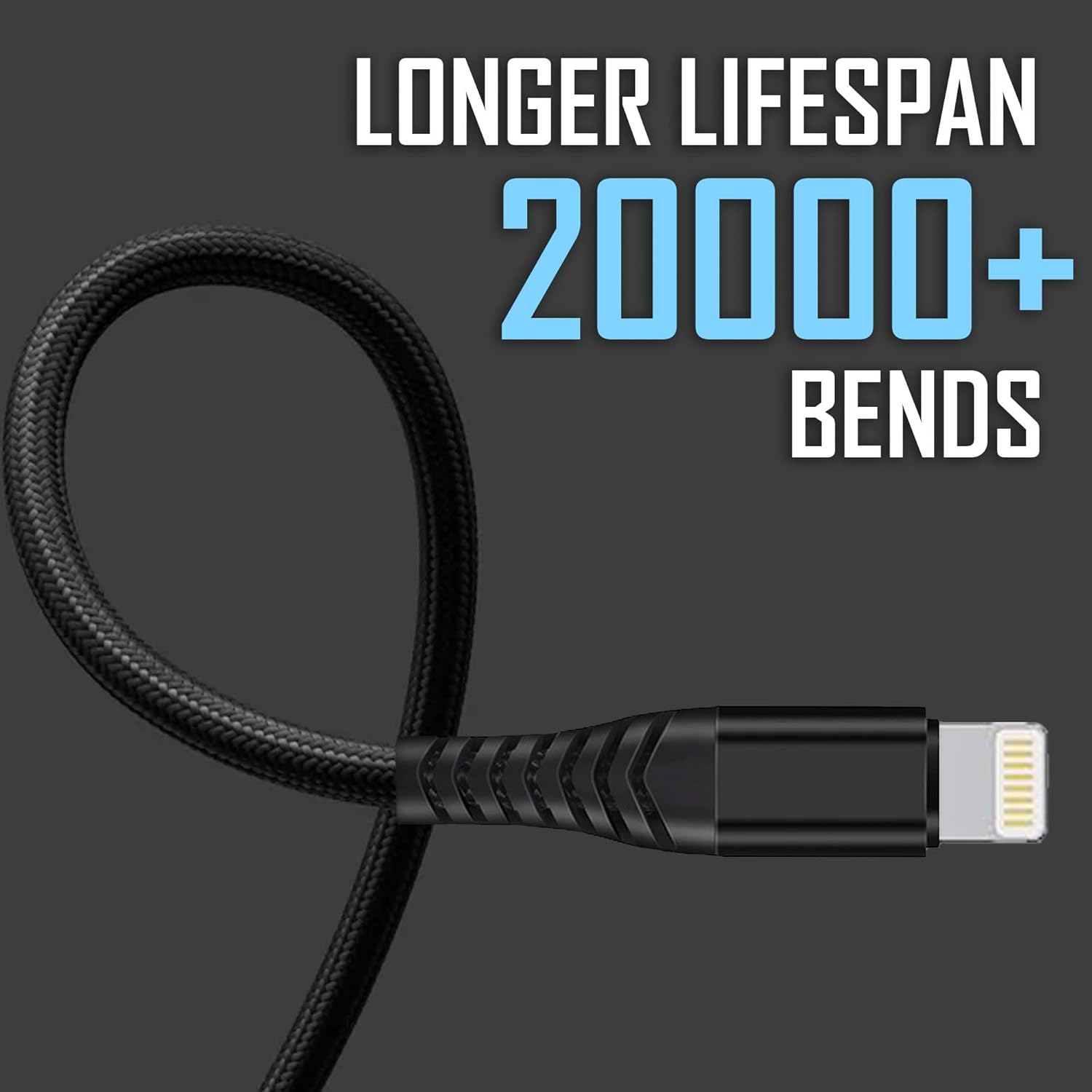 Ultra-Durable & Tangle-Free Designed for iPhone USB cable features a braided nylon exterior and reinforced connectors, providing a 10,000+ bend lifespan for break-resistant, long-lasting performance.