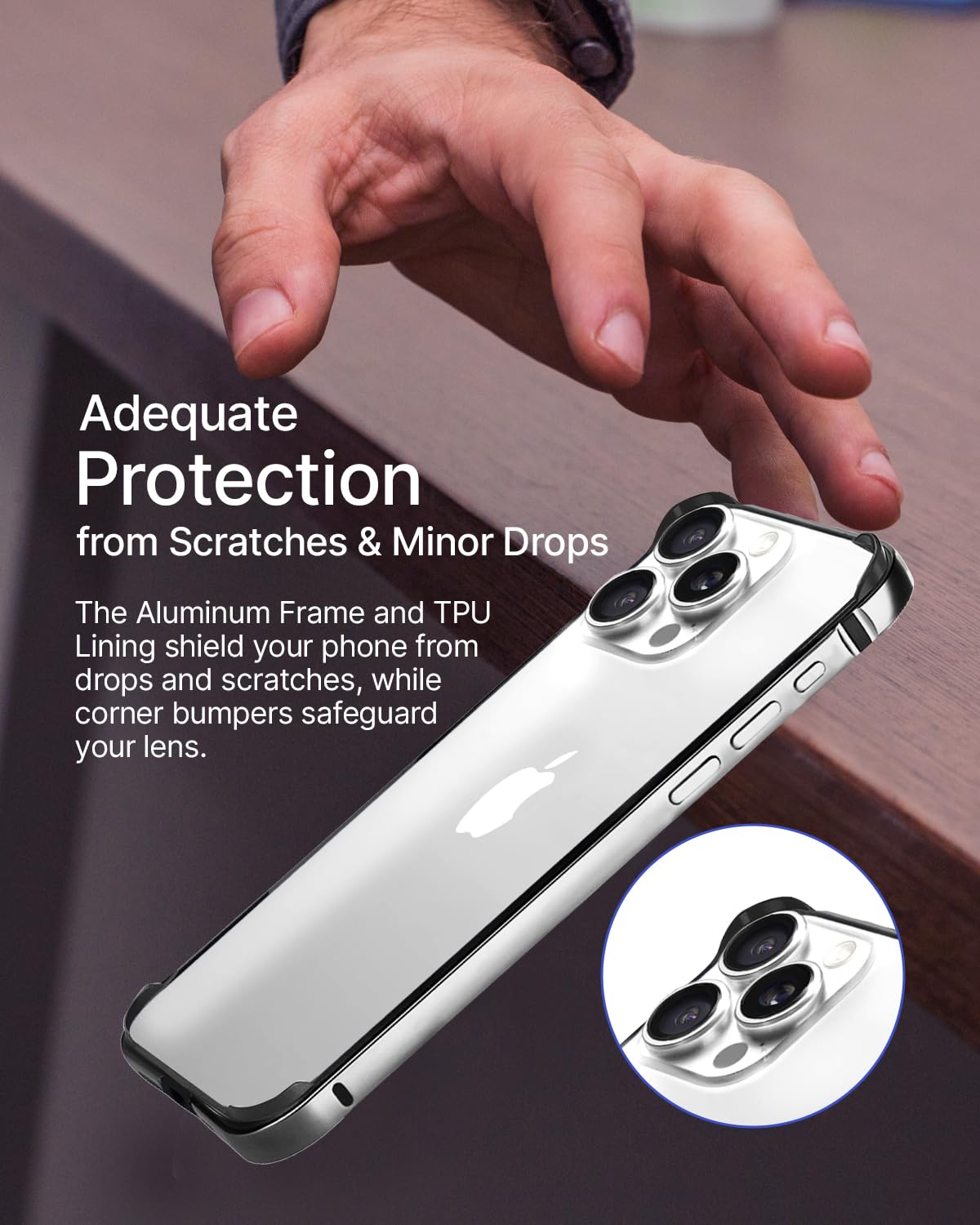 Dual Structure: Aluminum-alloy frame with TPU inner bumper of the Phone bumper case.