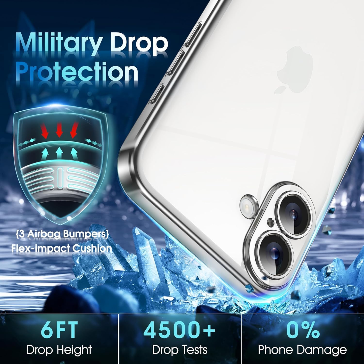 【Exclusive Electroplating Technology】: This case is made of soft TPU bumper and clear back. The bumper adopts an exclusive electroplating technology, which is covered with a silver plating coating on the soft TPU, giving it a sleek and stylish appearance while also providing excellent durability, flexibility, and resistance against daily wear and tear, ensuring long-lasting protection for your iPhone