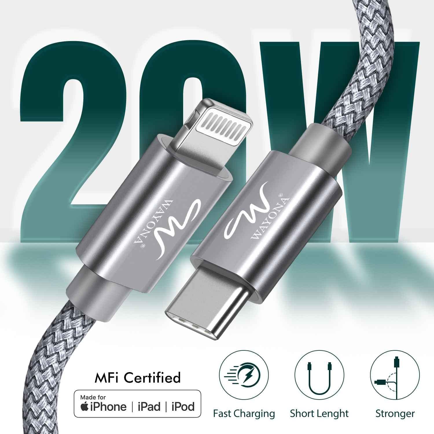 Wayona MFi Certified Type C to Lightning 0.25M Short Fast Charging Cable for iPhones & iPads
